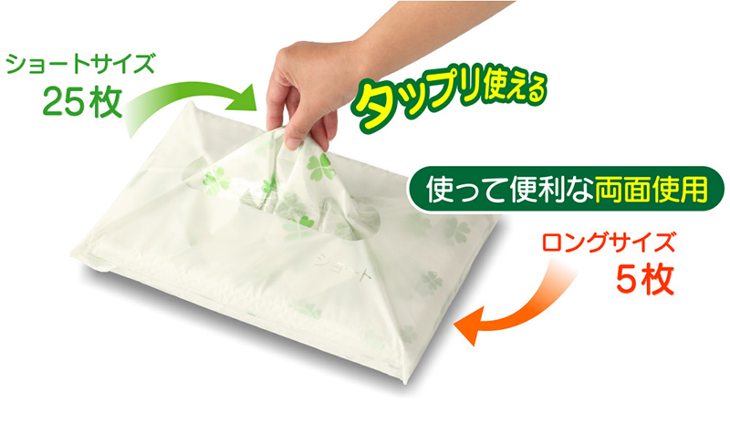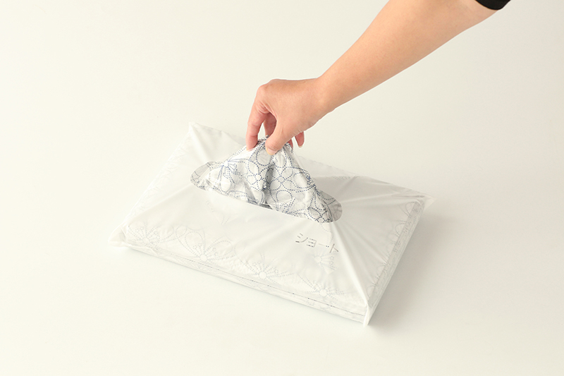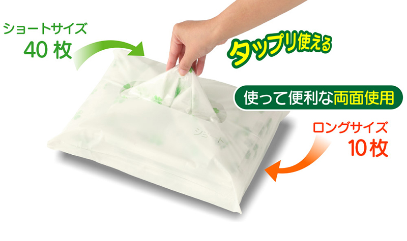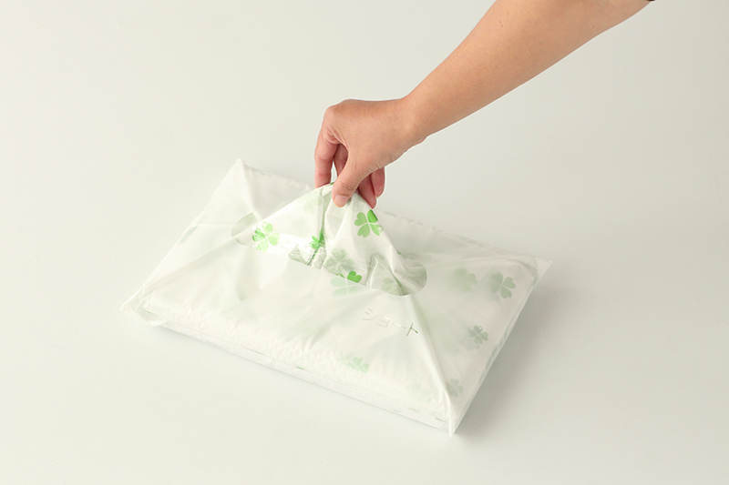背面は通気性に優れた不織布、前面は中身が一目でわかる透明フィルムを使用。