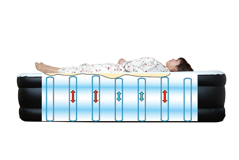 柱形状の内部指示構造は体全体を均一に支え、空気の柱が快適な睡眠を実現。