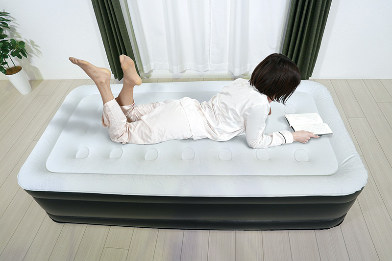 立ち座りしやすい46cmのエアーベッドで床の冷えや湿気から身体を守り、腰掛けしやすい高さ設計。