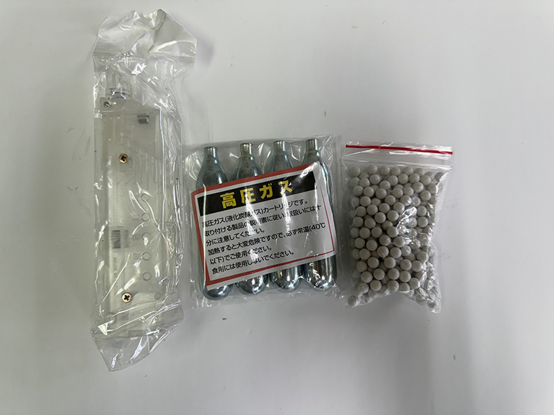 ガスハンドガン1丁、BB弾約300発+2000発、BB弾補充機1個、CO2ガスボンベ12g4本、取扱説明書