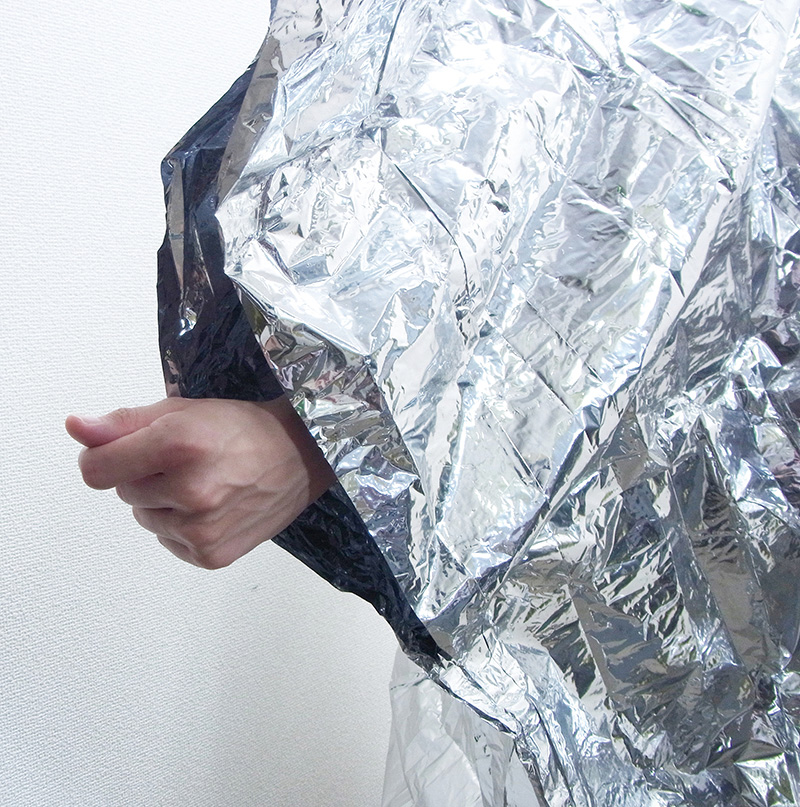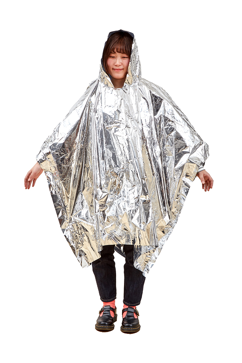 *ポンチョタイプのブランケットなので、両手が自由に使えて、非常時でも動きやすいです。