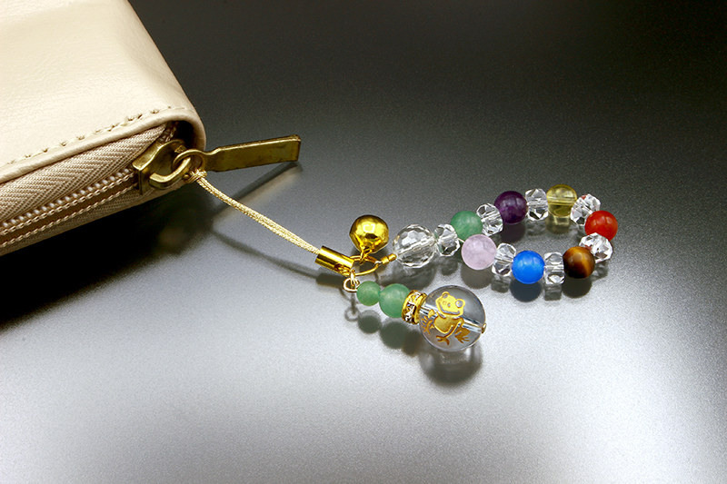 *「無事に帰る」「お金が返る」など縁起もので知られるカエルのストラップ。