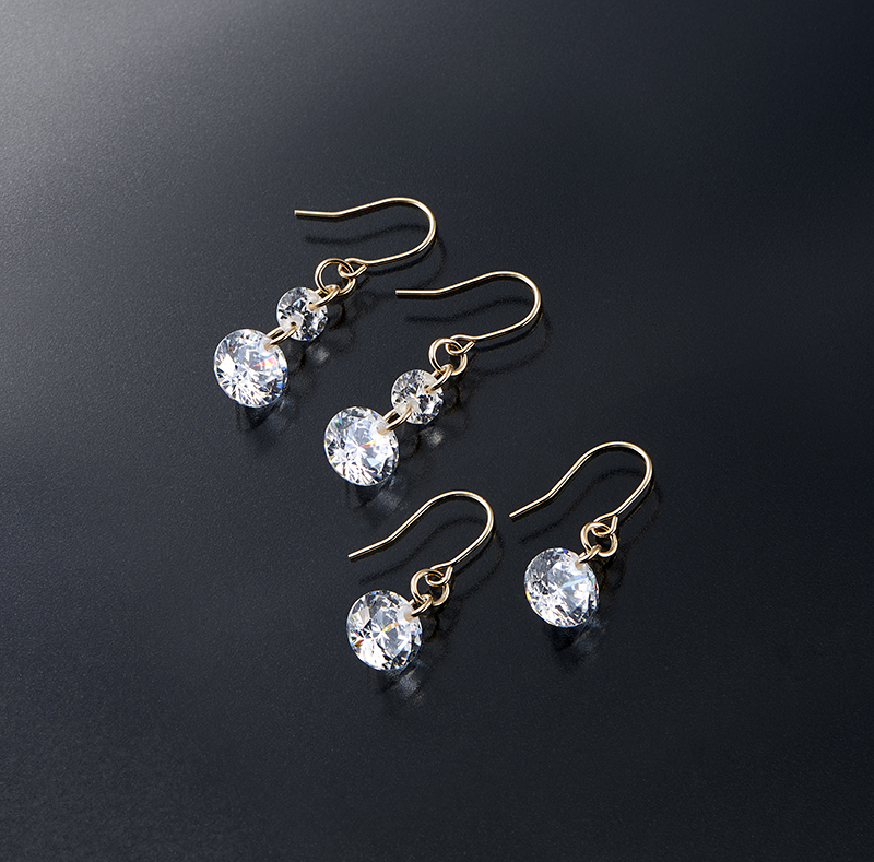 2連タイプ:0.24と0.78カラットの2粒のジルコニアが美しく揺れて、煌めきお顔まわりがより華やかに輝きます。
