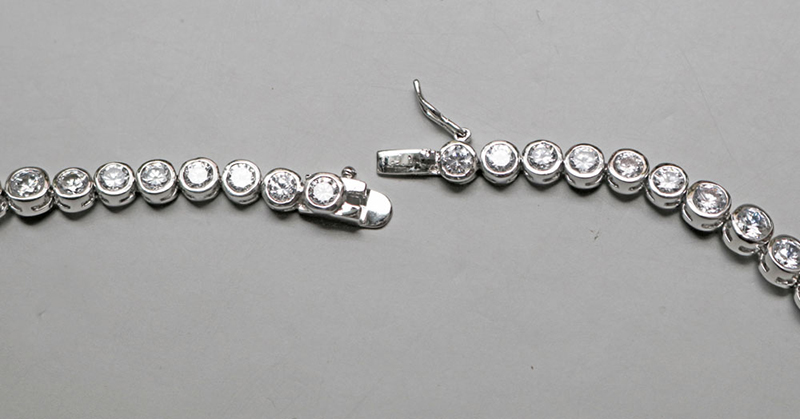 キュービックジルコニア(7.0mm〜5.0mm計68石)、純ゲルマニウム(20個/純度99.99%〜含有粒)