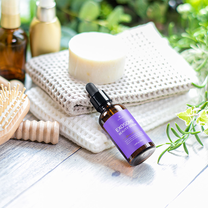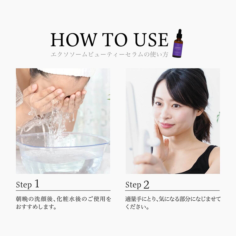*エクソソーム配合の美容液EGFやヒアルロン酸など保湿・肌調整成分で肌に潤いを与え、弾力を高め、すこやかに保ちます。