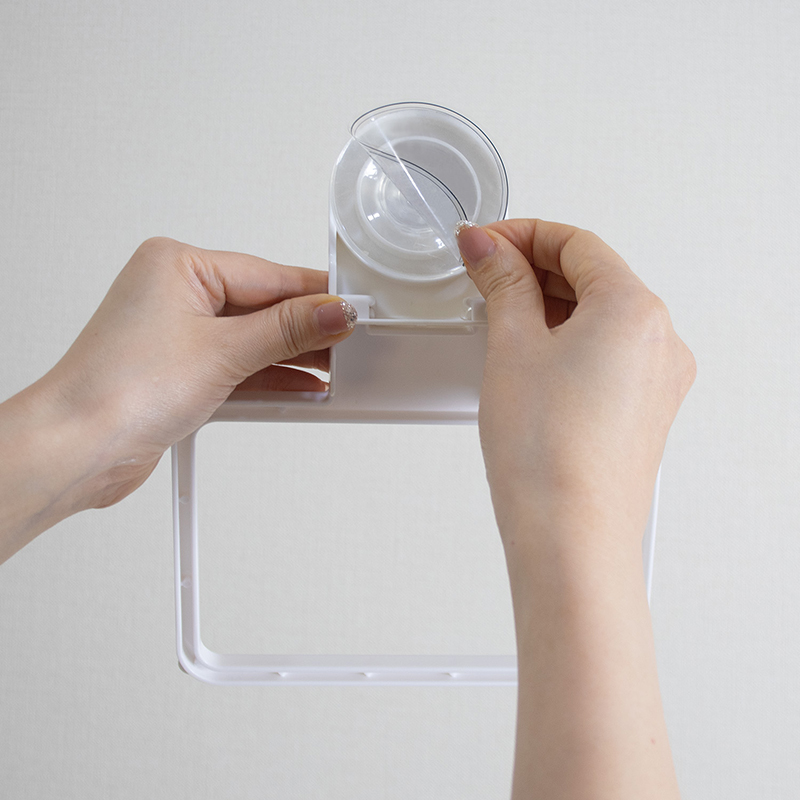 吸盤パッドについている保護フィルムを剥がし、取り付けたい場所に置きます。