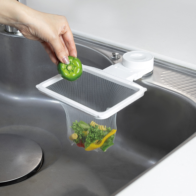 勝手に水切りをしてくれるのでシンクも汚れにくく捨てる時も水切り不要!