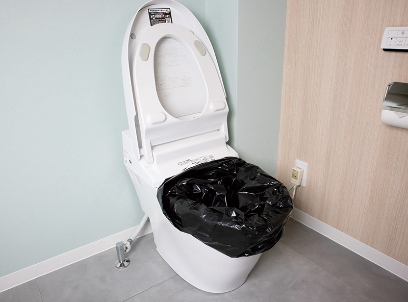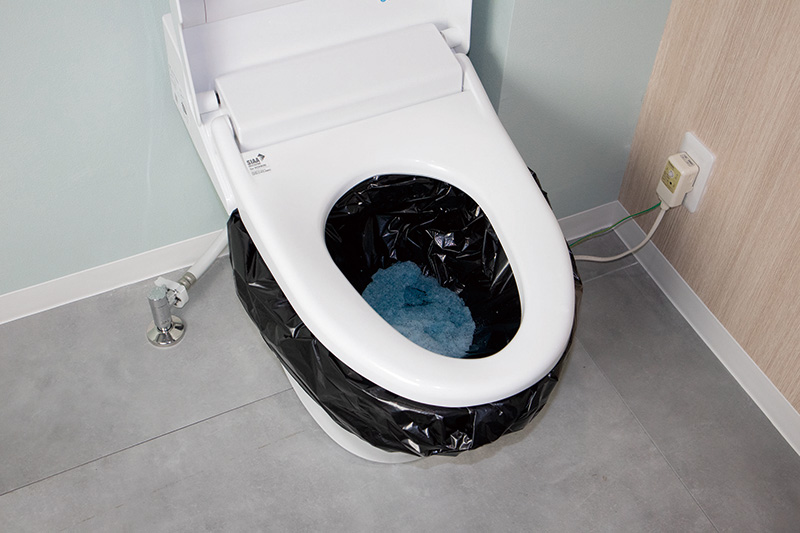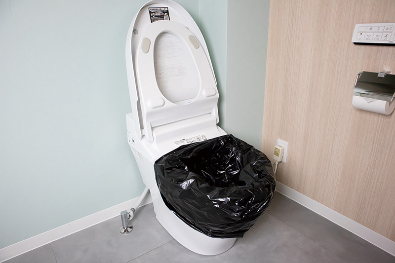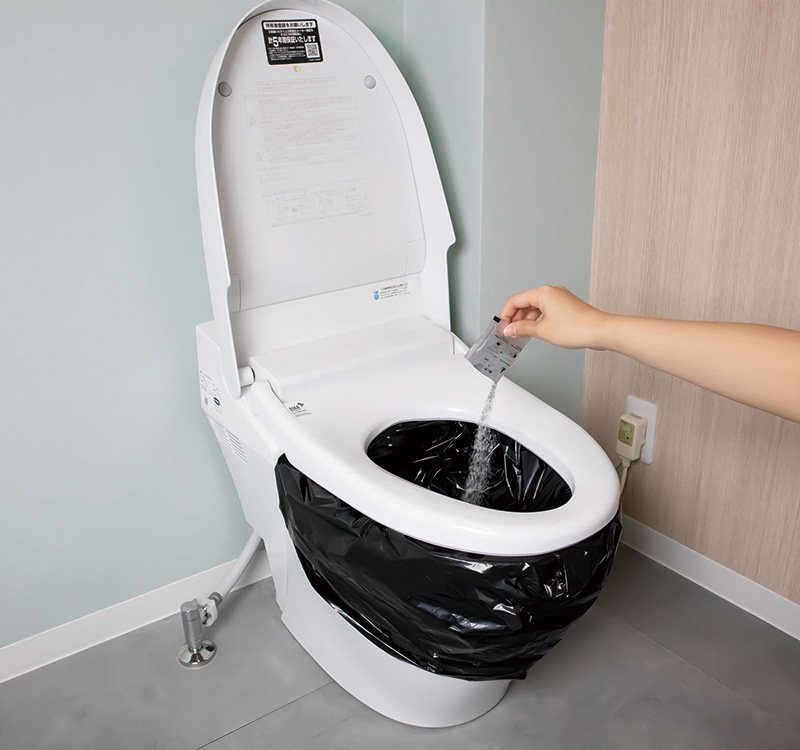 水が必要ない非常用トイレセットは水を必要とせず排泄物を凝固して廃棄する事が出来ます。