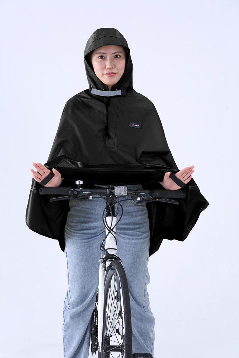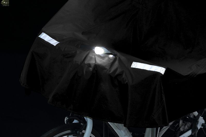 *ハンドルに付けたライトをポンチョの外に出すファスナー式窓付き。