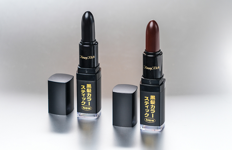 *髪に塗れば白髪を隠し、地肌に塗れば薄毛を隠す、髪にも地肌にも塗れるカラースティック。