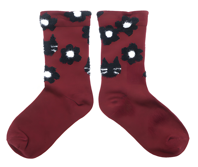 *ボーダー柄と花柄の猫柄ソックス。
