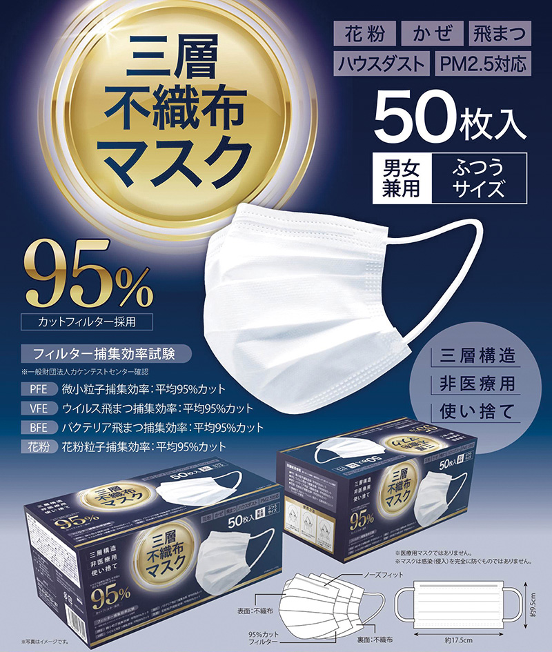 ★男女兼用、95%カットフィルター採用、ド定番の三層マスク!